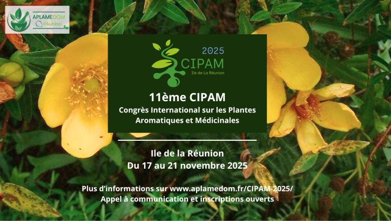 Le CIPAM 2025 – Congrès International sur les Plantes Aromatiques et Médicinales se tiendra du 17 au 21 novembre 2025 à La Réunion. Cet événement majeur est porté par l’APLAMEDOM (Association Plantes Aromatiques et Médicinales de La Réunion) avec le soutien d’un comité d’organisation auquel le CYROI est fier de contribuer.
